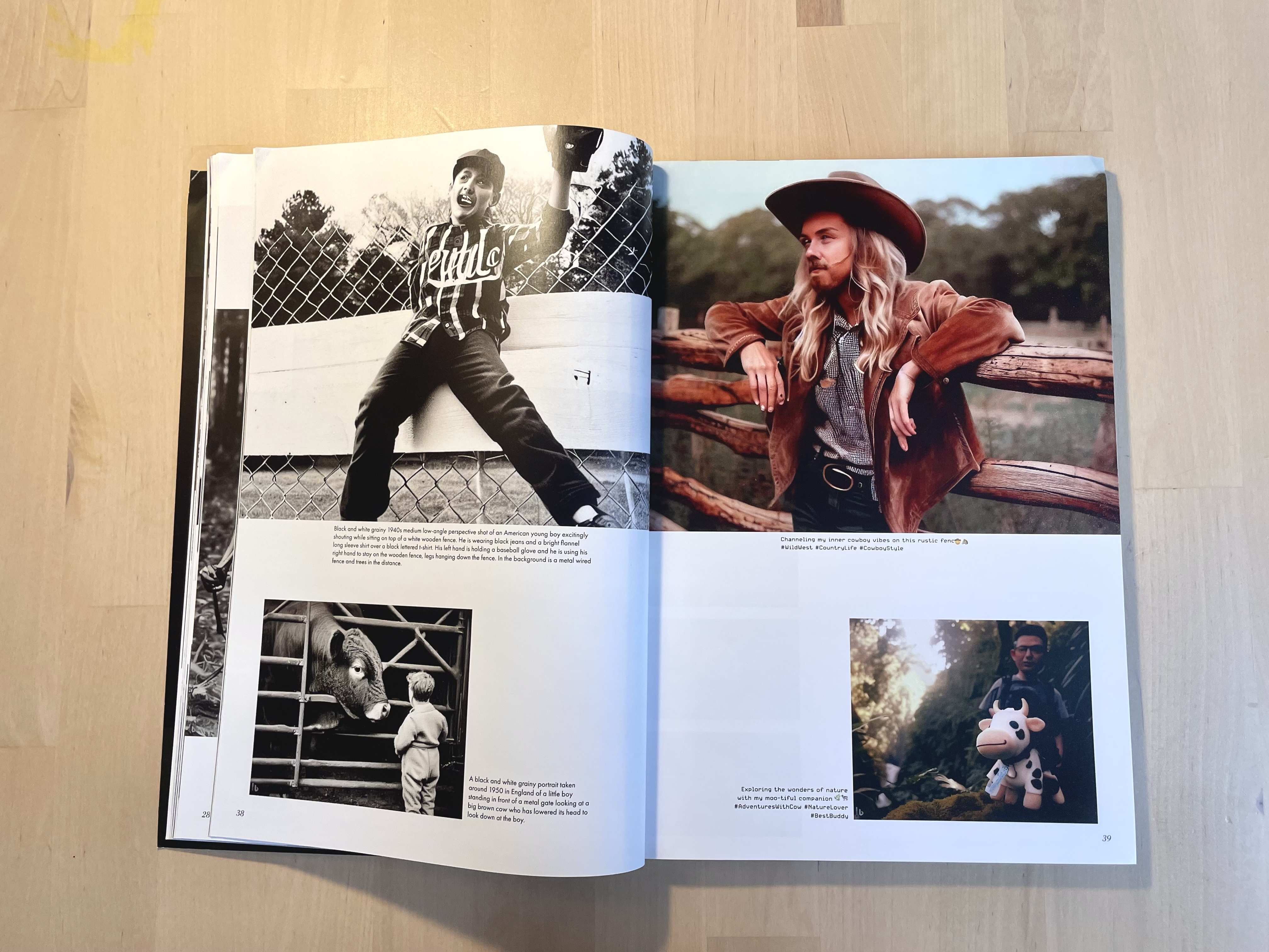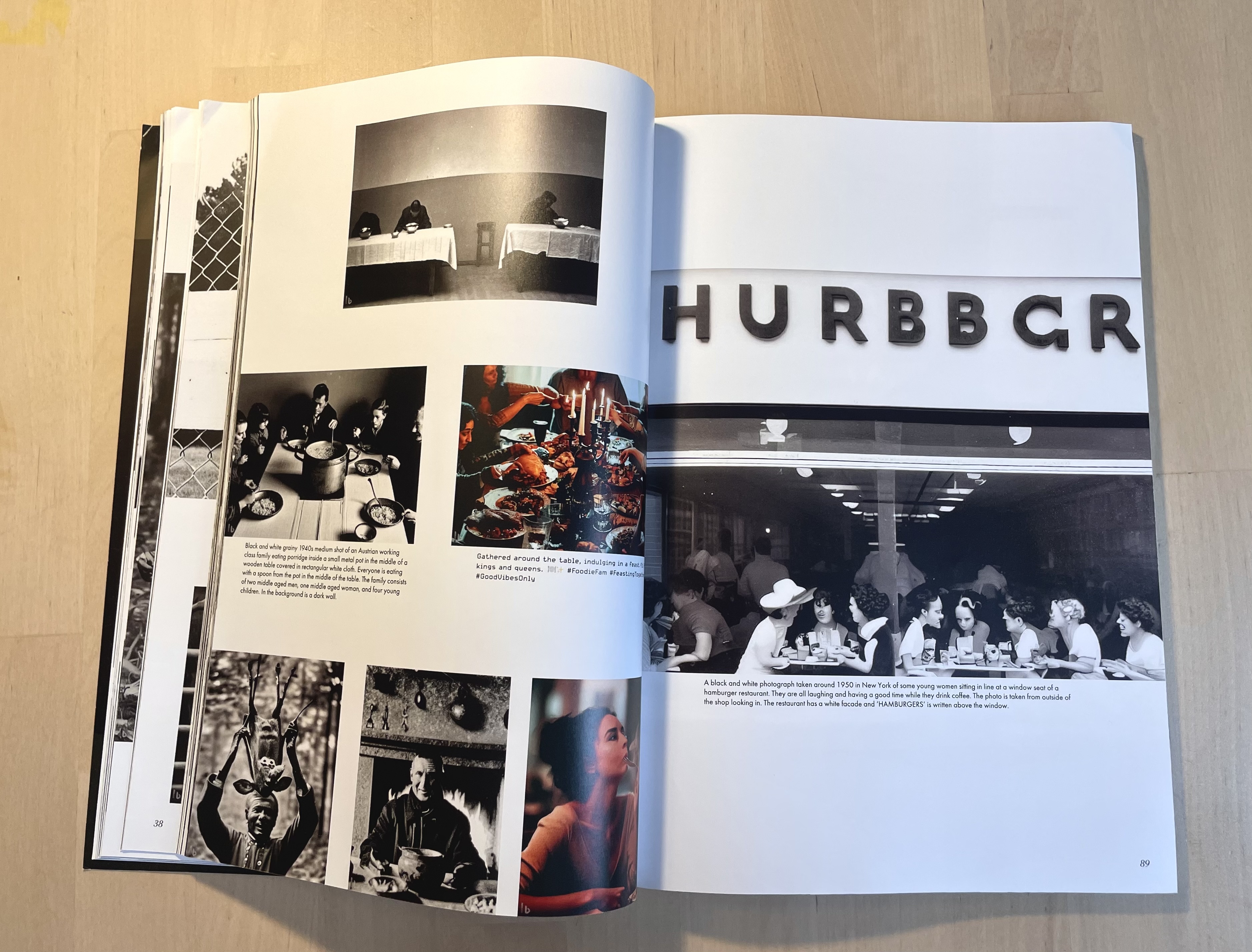 One of the curatorial projects within ‘A Flickr of Humanity’ that I worked on was the creation of a publication titled ‘A Generated Family of Man’. This was an exploration into generative AI imagery. Me and my fellow intern Juwon Jung, recreated a vast selection of the images in ‘The Family of Man’ by writing descriptions of each image and passing it through Bing’s Image Creator. We then designed the publication which was based off of the original ‘Family of Man’. While the layouts aren’t an exact replica, there are several pages where they are the same so if you view the original ‘Family of Man’ publication alongside ‘A Generated Family of Man’ you can easily make side by side comparisons. The publication is a critique on AI image generation but also acts as a time stamp to show where generative AI was at in 2023.