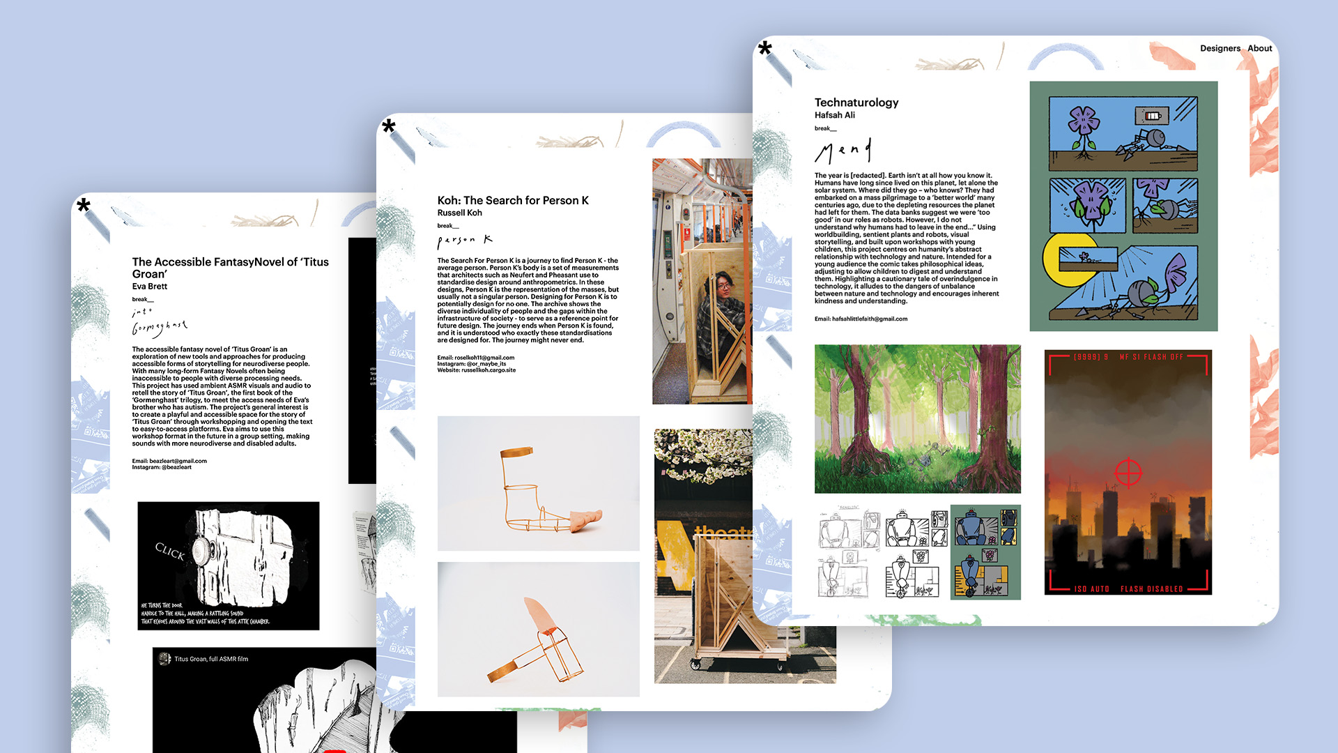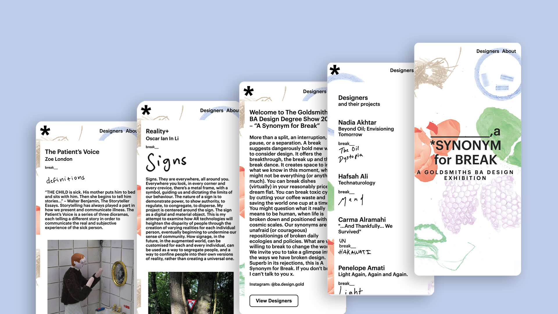 A Synonym for Break is the name of my final year exhibition which was held in June 2024. As part of the exhibition prep I put myself forward to design and develop the exhibition website.
