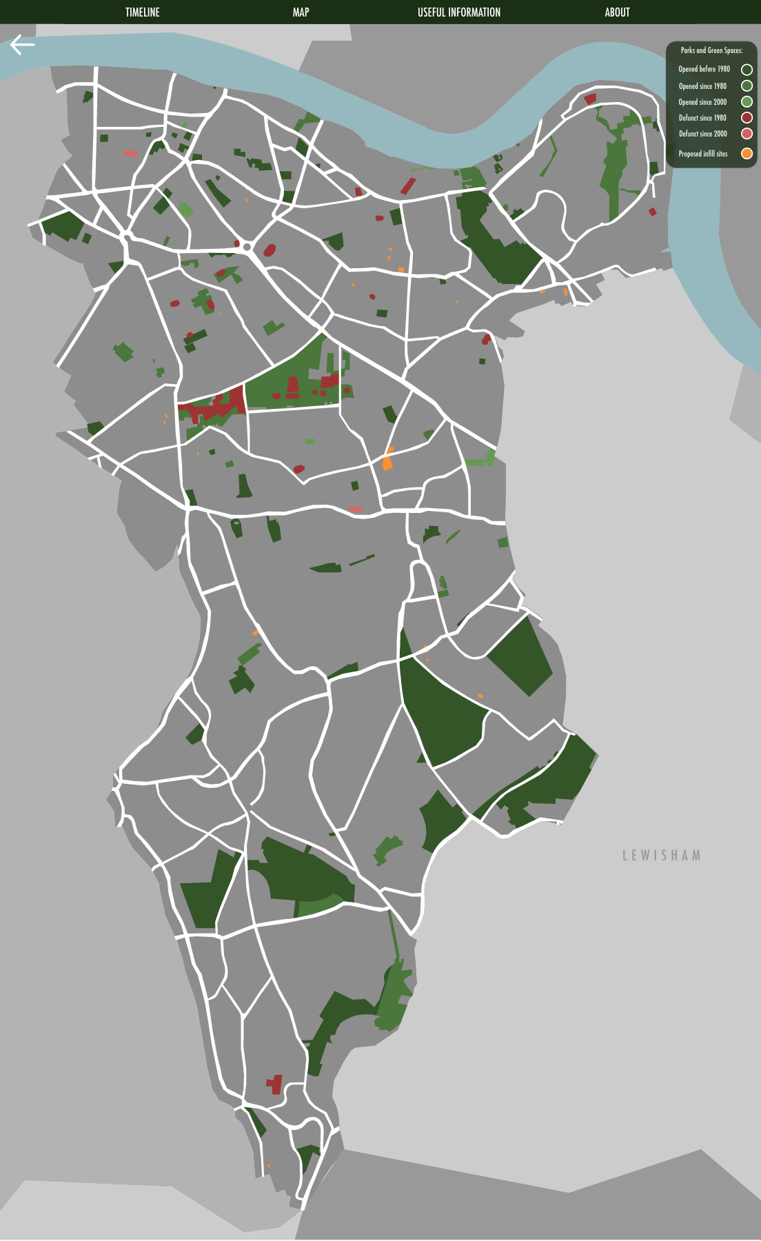 Screenshot of the map I made for the original London Parkive. Rather than use an existing base map I decided to illustrate my own using Adobe Illustrator.