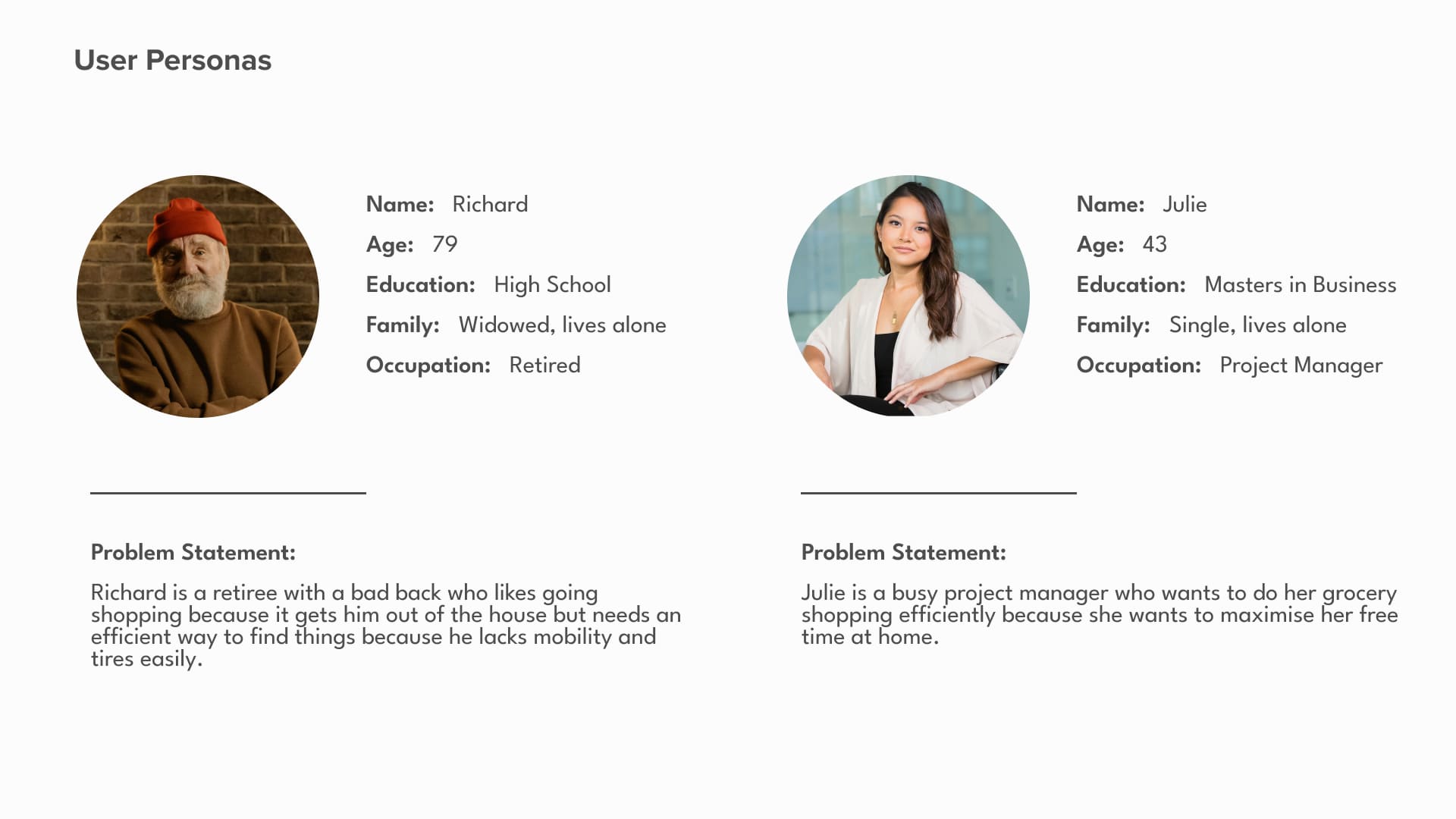 A couple of examples of the user personas.