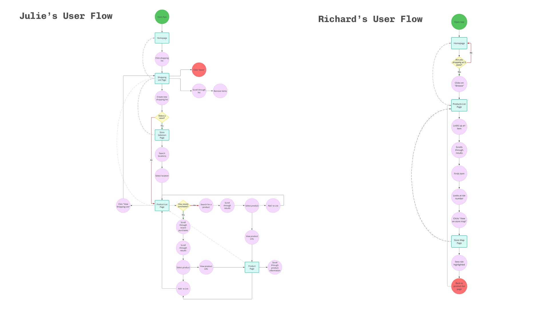 Julie and Richard's user flows