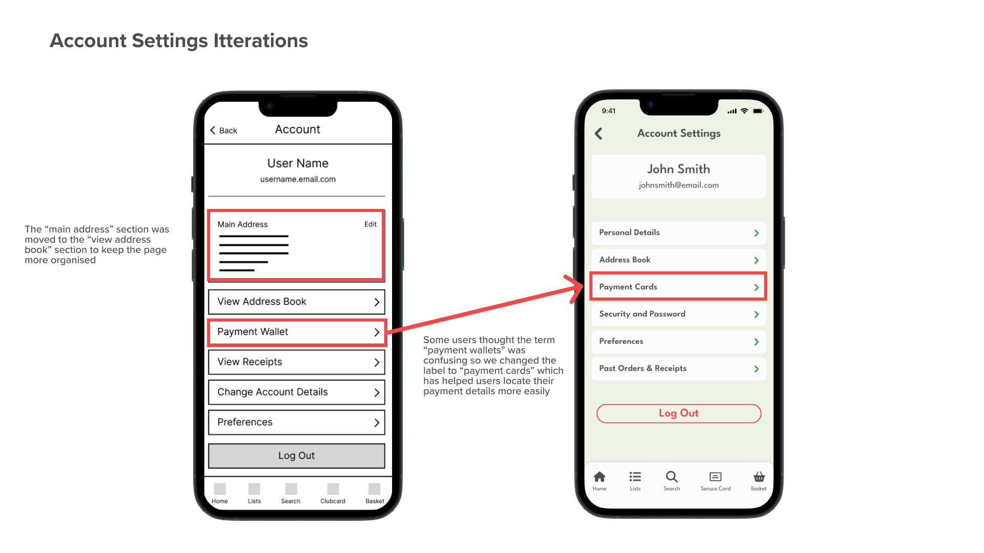 - It was observed that 2 out of 4 participants thought the payment information was located on the “change account details” page rather than the “payment wallet” page. This means that half of the users might struggle to find where to update their payment information.