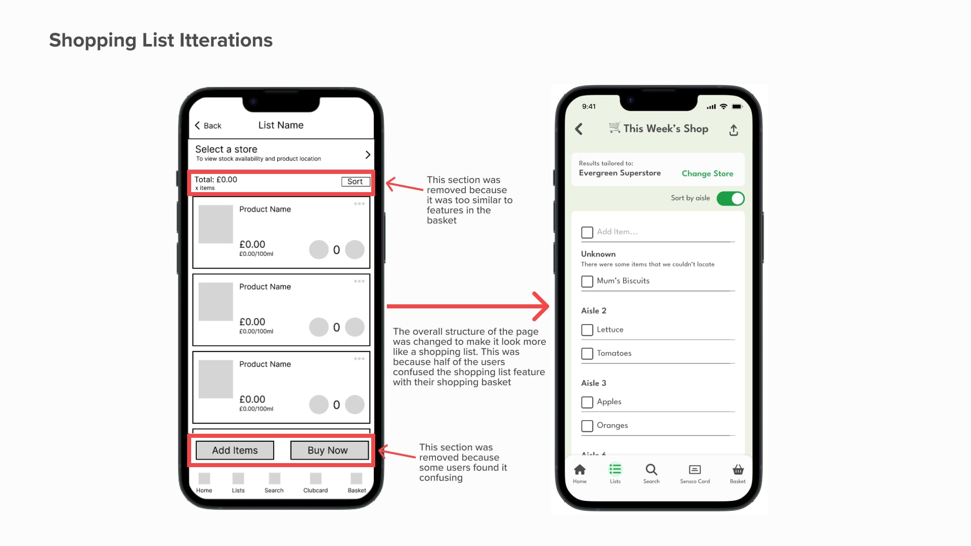 Itterations made to the shopping list page