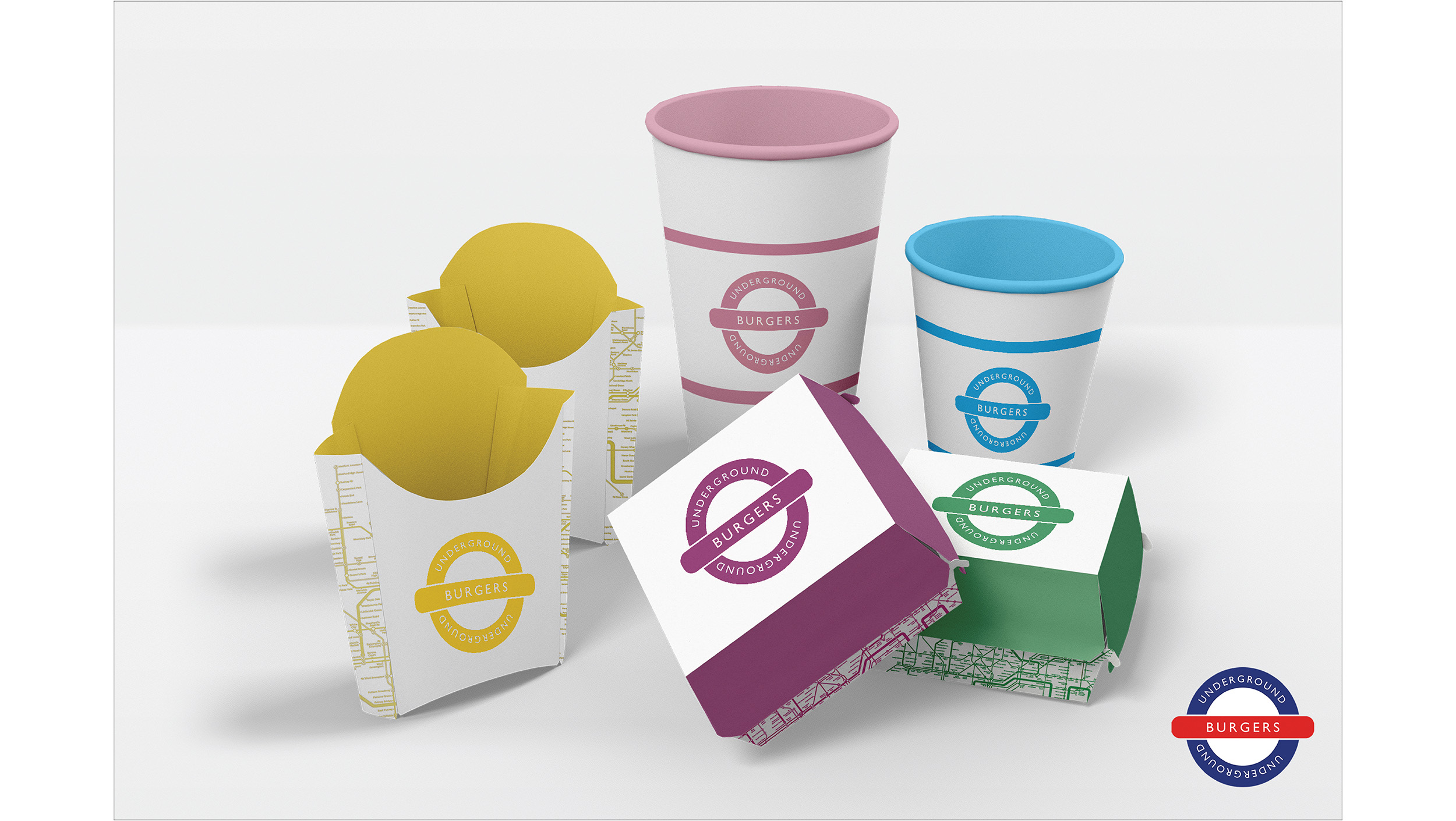 The concept is for a burger restaurant where the interiors, graphics and overall branding is inspired by the London Underground.